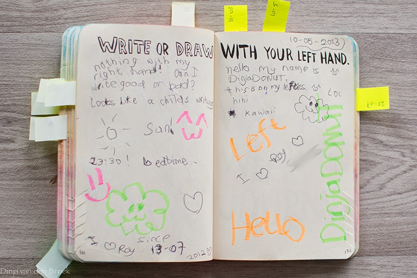 Echt leuk om een keertje met mijn andere hand te schrijven en tekenen, op zich kan het wel: handig voor als er een keer iets gebeurt met mijn rechterhand!