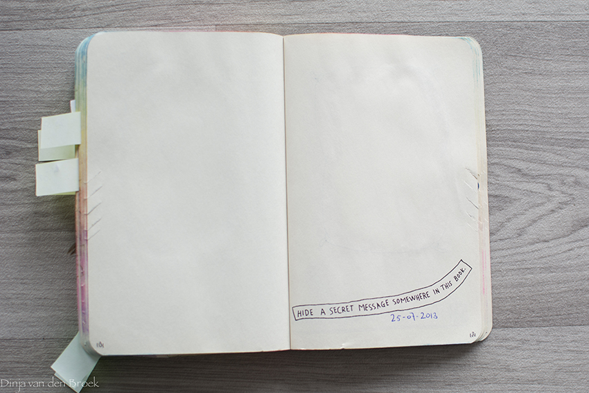 Mijn doel moet ik gewoon behalen, voor het eind van dit jaar, 2015, wil ik mijn Wreck This Journal af hebben/ vol hebben! En dan wil ik ook alle opdrachten gedeeld hebben met jullie, zodat ik in 2016 met een nieuw boek van Keri Smith kan beginnen!