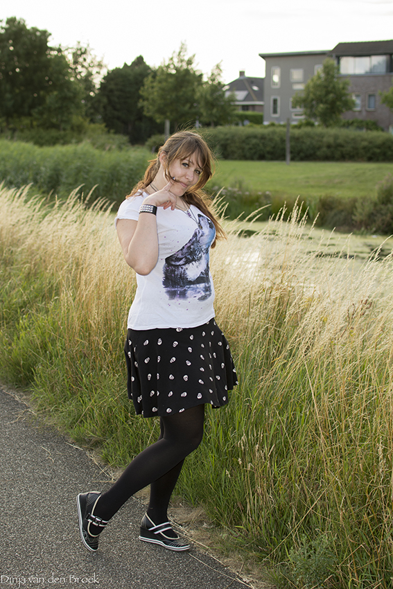 Wat een leuk rokje heb je aan! Mooie outfit :).