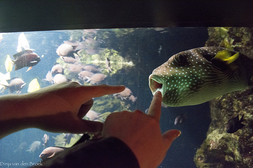 Na ons bezoekje aan de vlindertuin begon het lichtelijk te regenen. Wat was er nog meer overdekt? Juist het aquarium. Ik vond het niet zoveel voorstellen – ik ben mooie aquaria van andere dierentuinen gewend – maar het was wel even leuk om te zien.