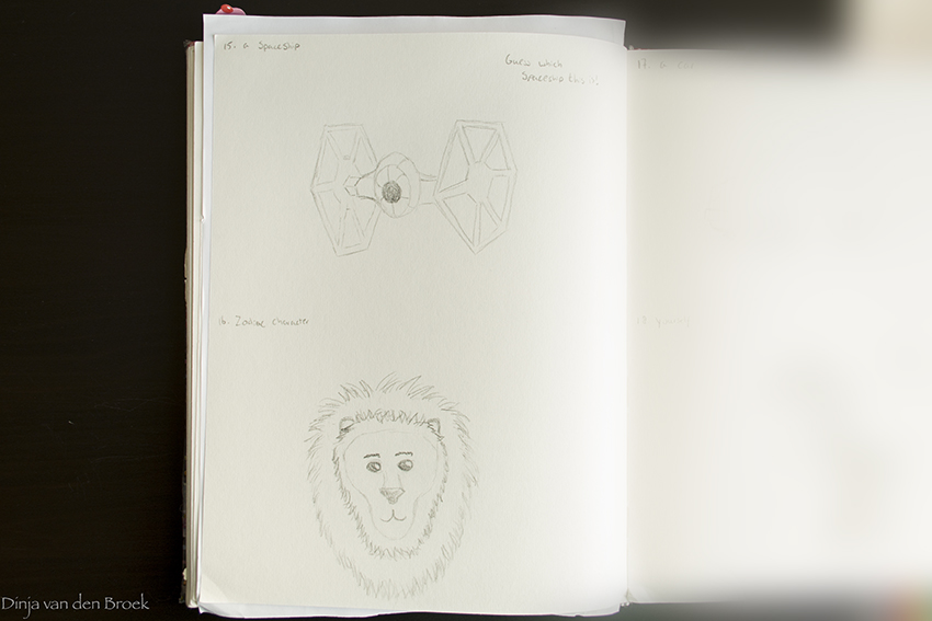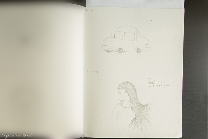 Deze keer waren de opdrachten iets uitdagender. Niet allemaal erg lastig maar ik moest wel meer mijn best doen om sommige dingen te tekenen. Vooral het zelfportret.